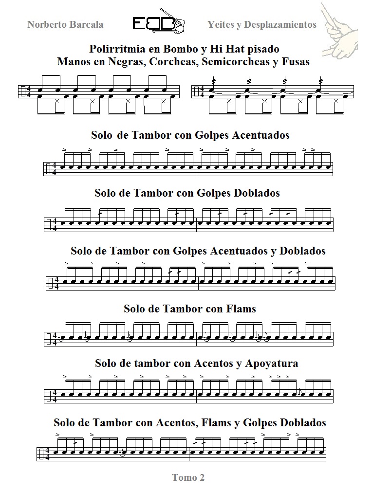Luego del extenso estudio recorrido hacia nuestro instrumento, finalmente logramos nuestro objetivo, poder dominarlo a nuestro libre albedrío. Queda ahora como nuevo aditamento y conclusión final el desarrollar toda la independencia, soltura, desplazamientos y polirrítmias que se encuentren a nuestro alcance, razón por la cual nos abocaremos en estos dos libros de YEITES Y DESPLAZAMIENTOS, en los cuales encontraremos;